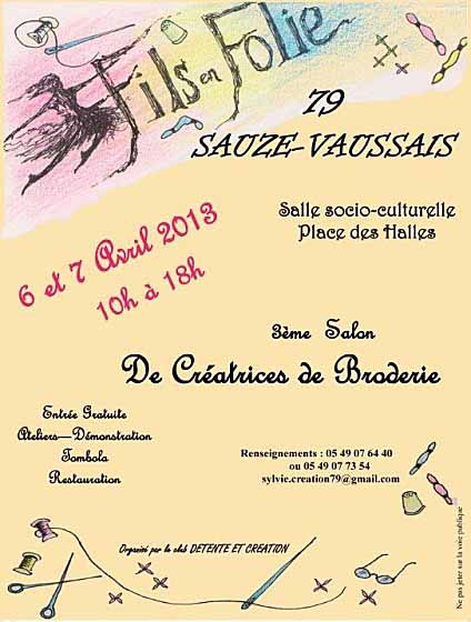 C’est avec une certaine excitation que je vous annonce ma participation au salon de créateurs de Sauzé-Vaussais de 10h à 18h le 6 et 7 avril 2013….