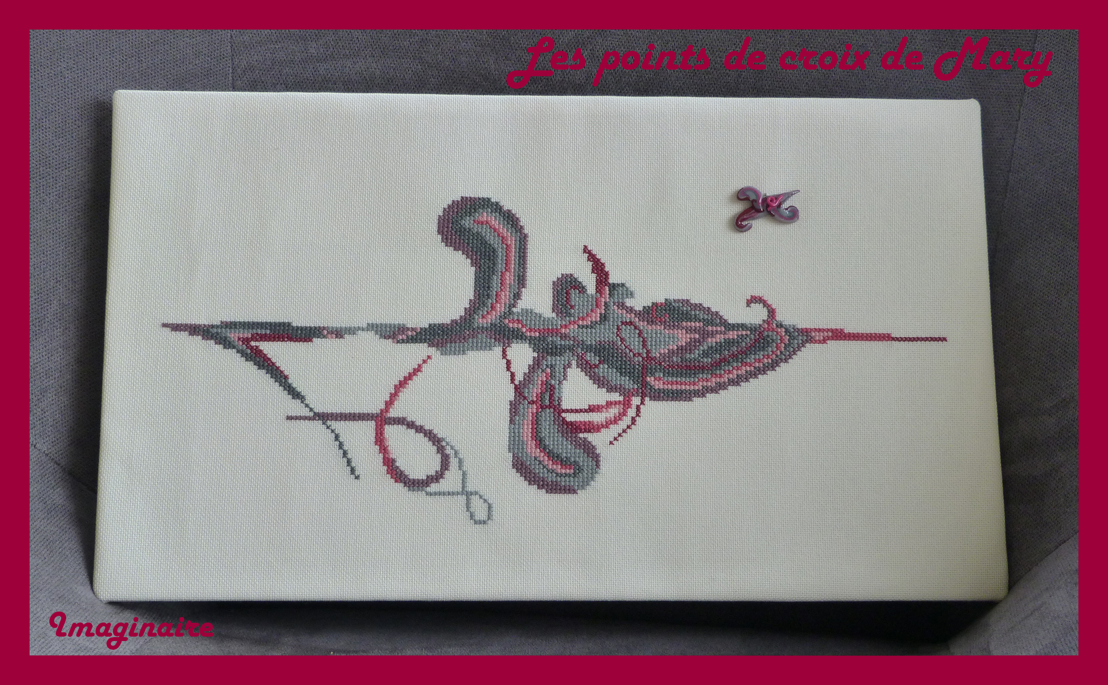 Aujourd’hui je vous propose un modèle qui porte un nom évocateur IMAGINAIRE … 🙂 Du mouvement dans les tons de gris et rose jusqu’au bordeaux…. Il est brodé en 2 fils dur 2 fils sur de la toile Lugana 10 fils par cm. Sa taille : 181 pts x 81 pts