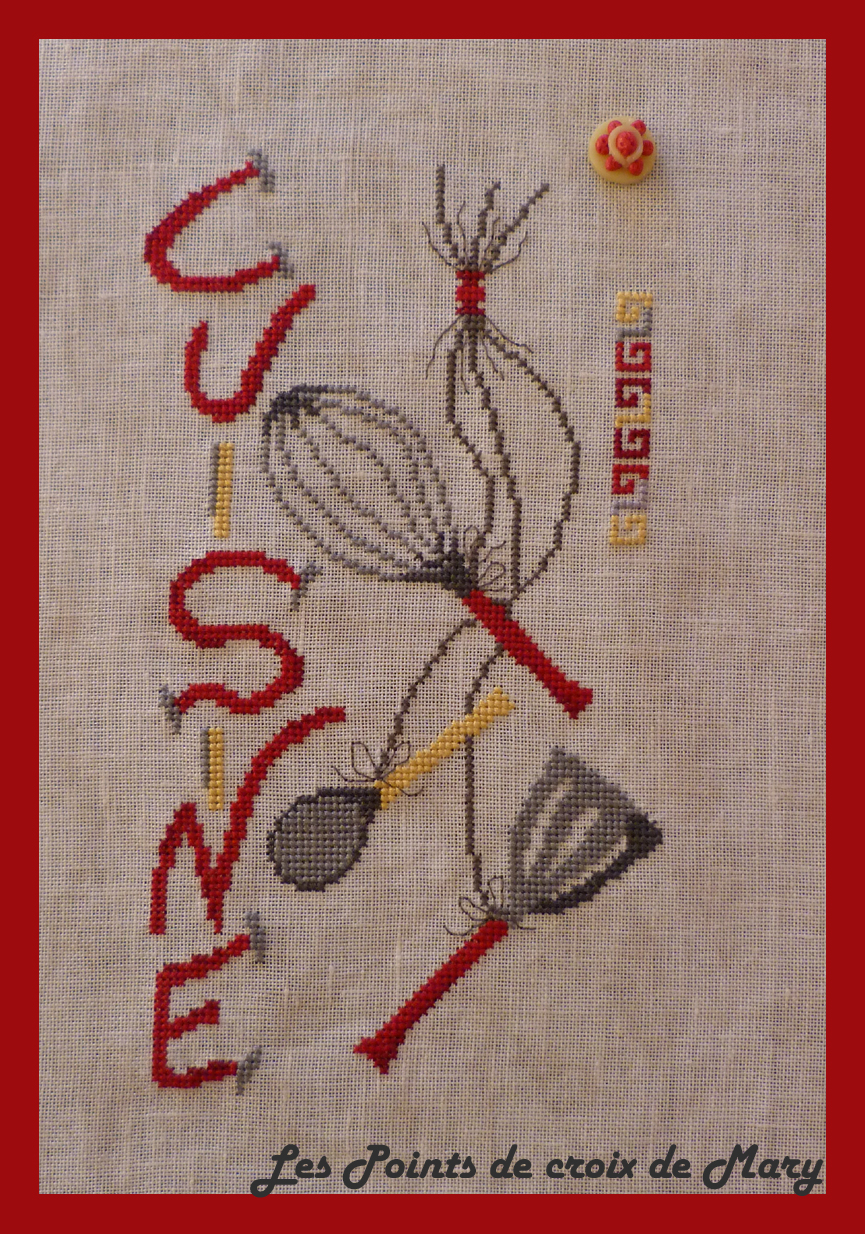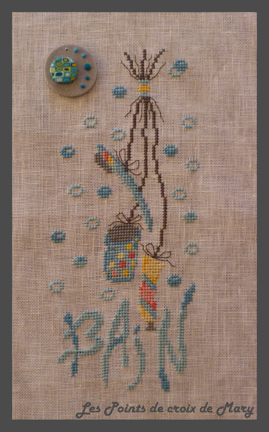 Ils sont brodés en 2 fils sur 2 fils sur de la Belfast vintage 12.6 fils/cm légèrement marbrée.