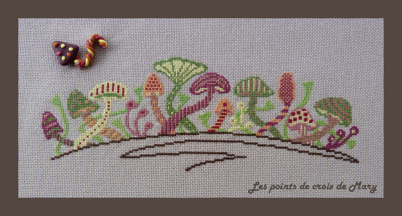 Il est brodé en 1 fil sur 1 fil sur de la toile Linda 11 fils/cm taupe.