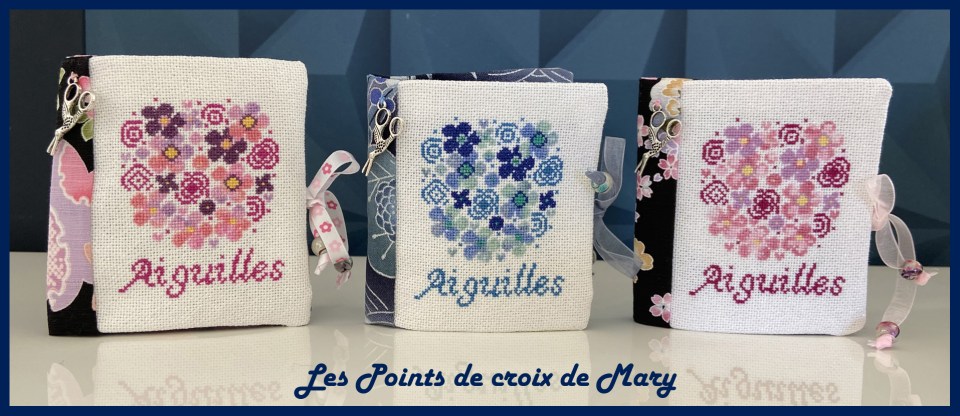 Des tissus ramenés du japon, une nouvelle matière de la laine bouclée découverte chez Patricia Linder, des petits points de Masseret et hop je vous propose ici des kits de carnet à aiguilles.