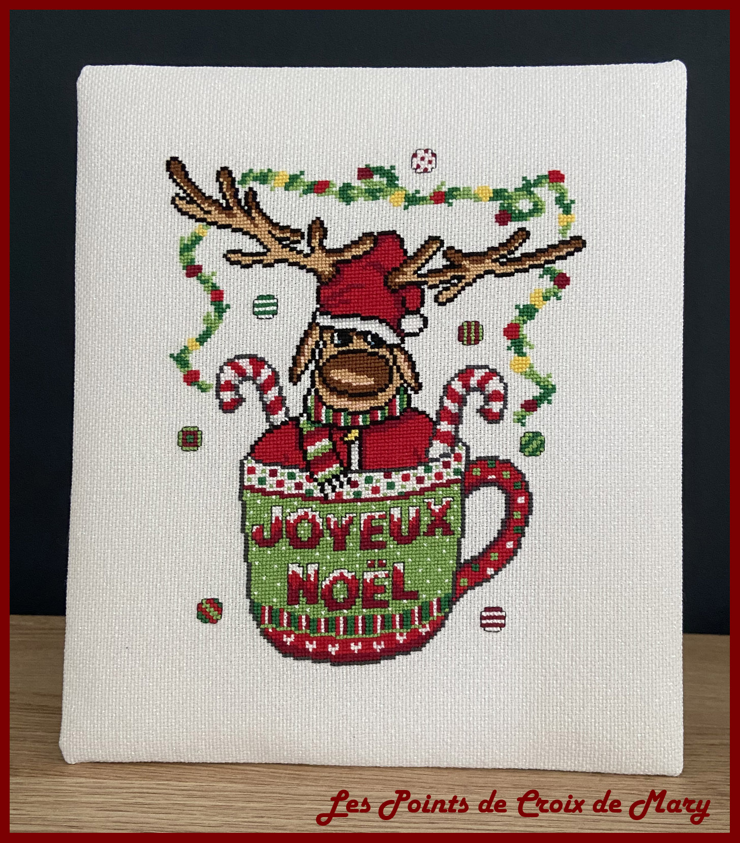 Un renne de Noël… coincé dans un mug, avec une guirlande emmêlée dans ses bois il est bien rigolo!