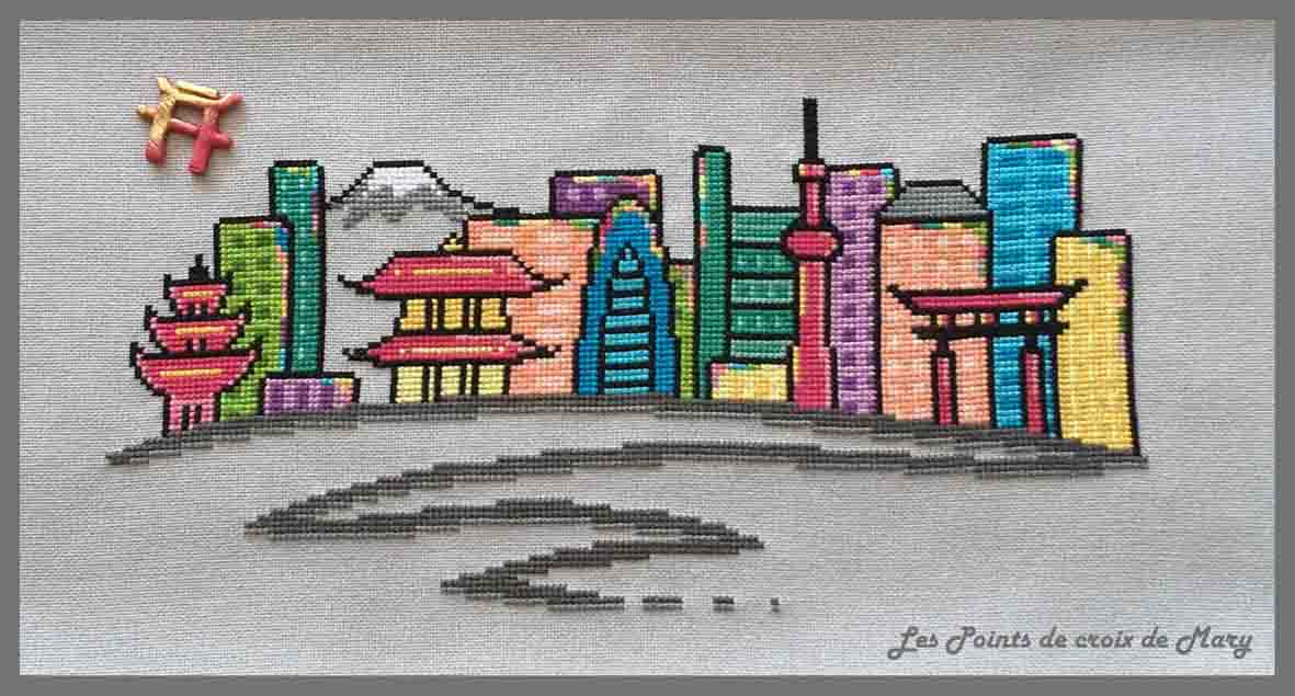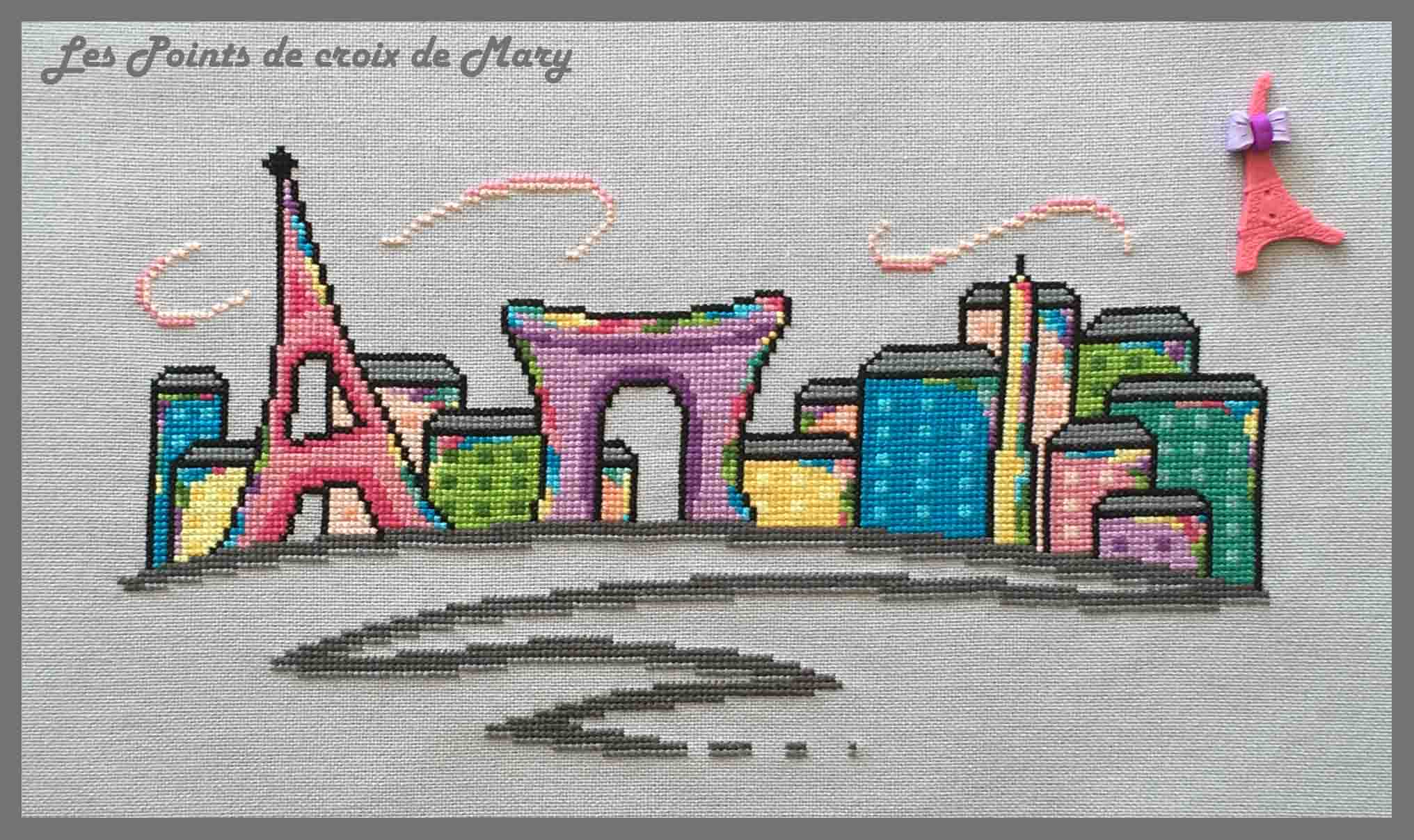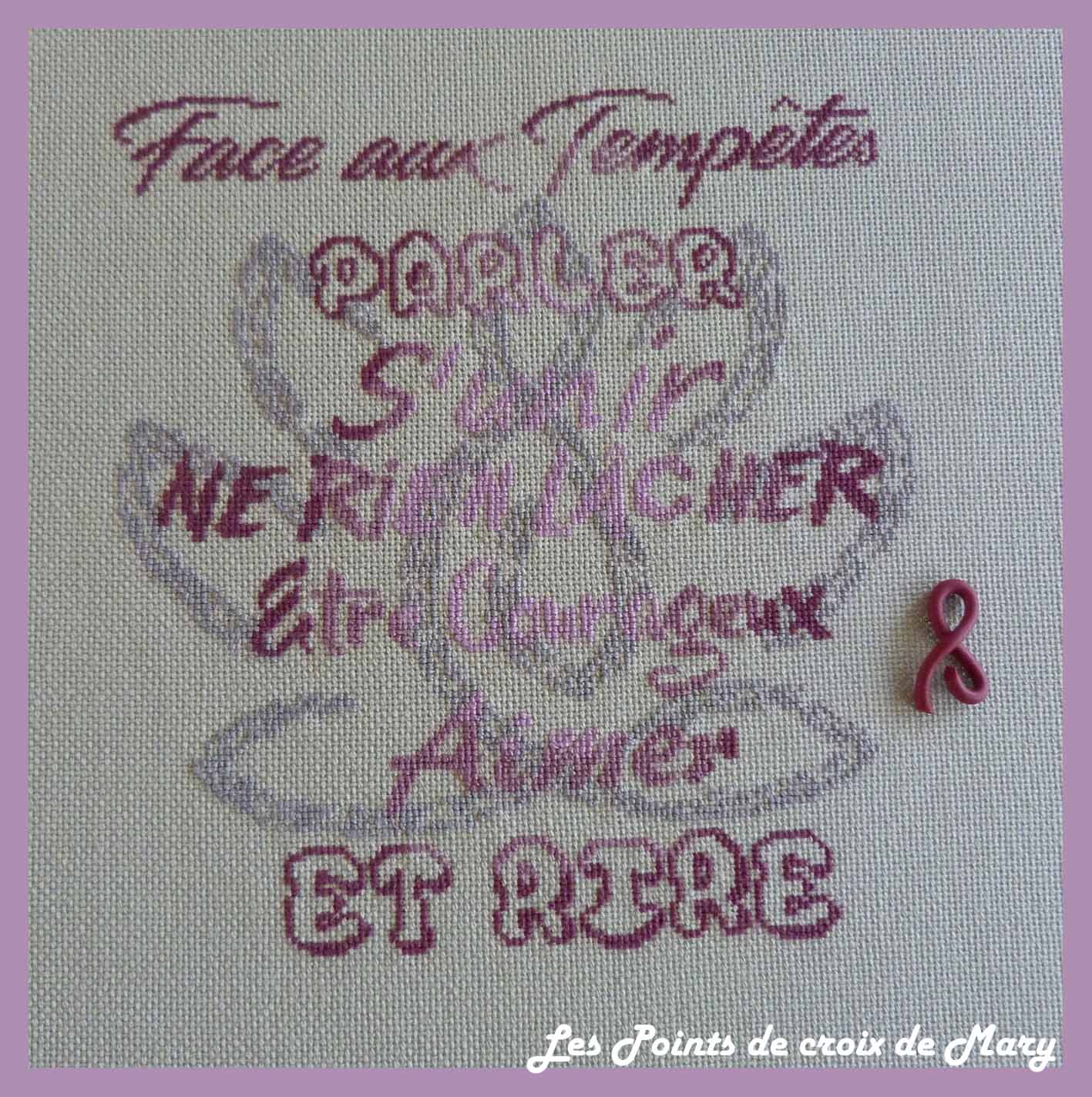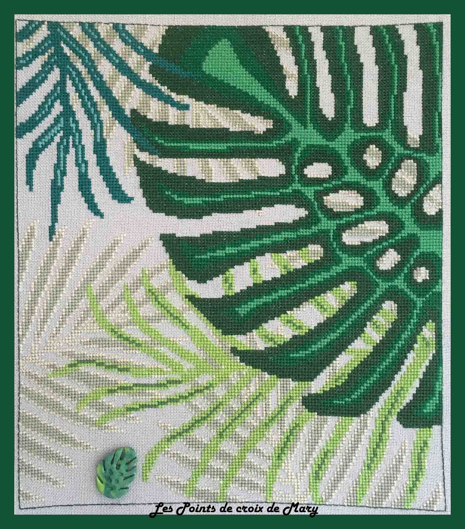 Il est brodé en 2 fils sur 2 fils sur de la toile Belfast blanc pailleté 12 fils /cm.