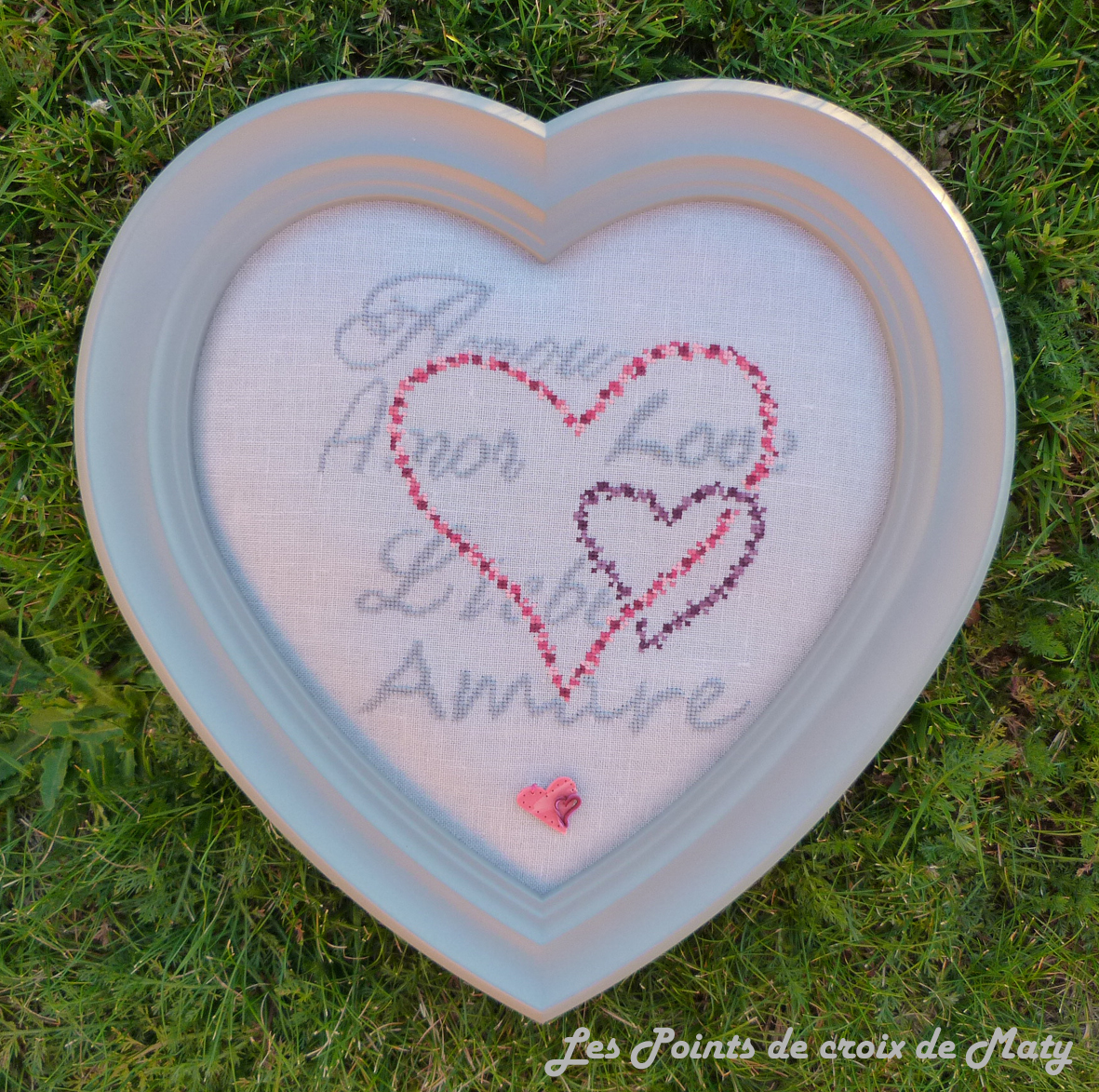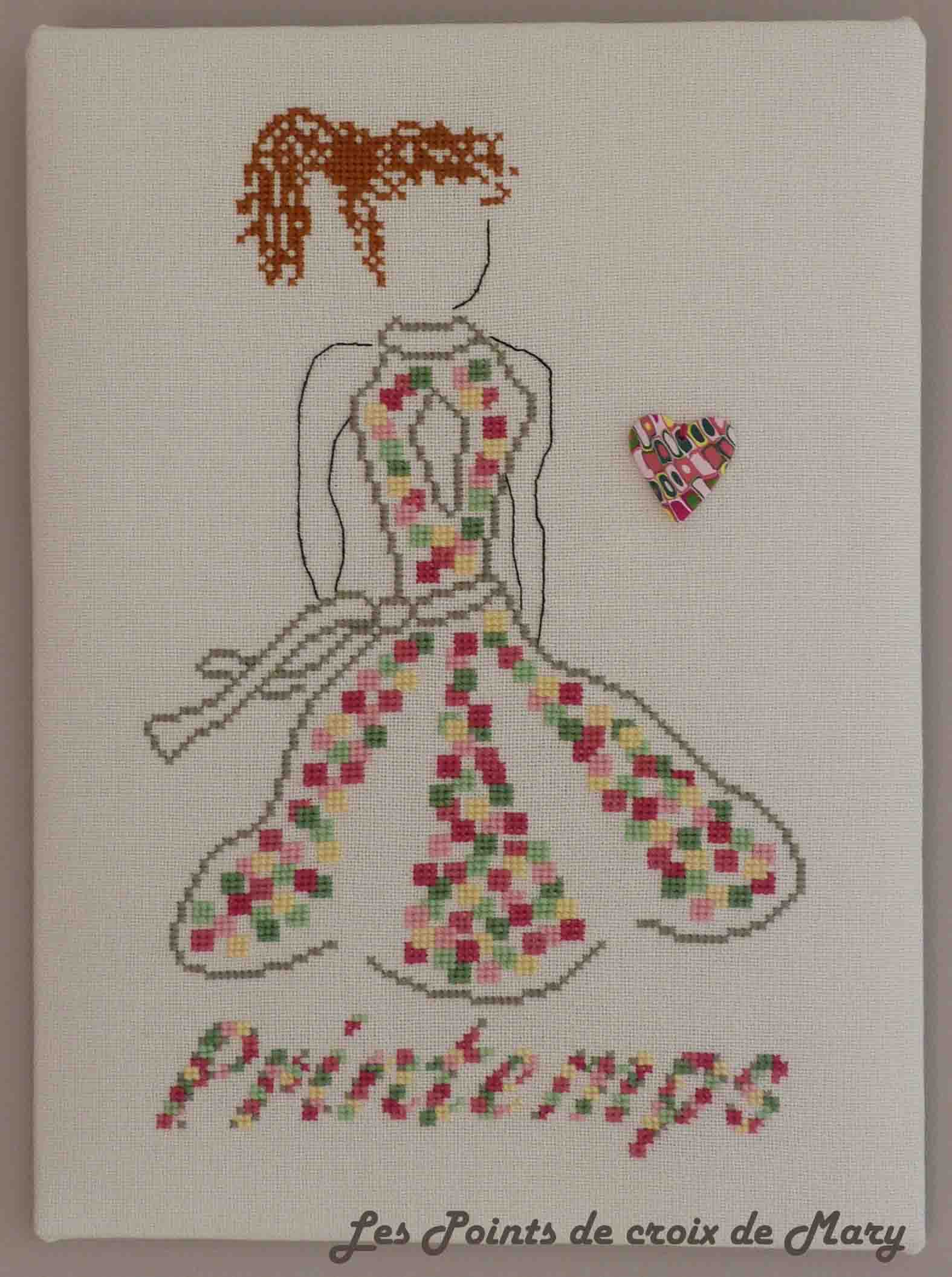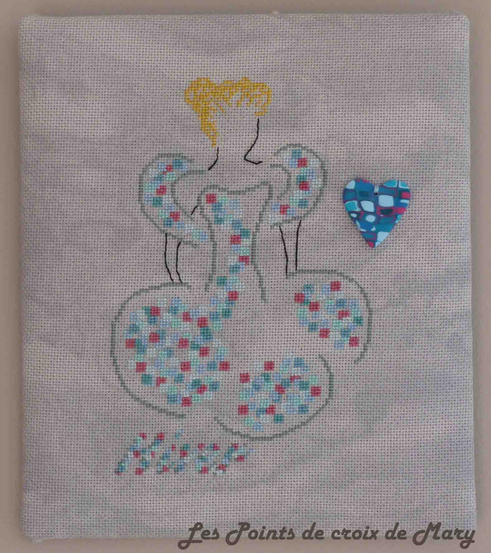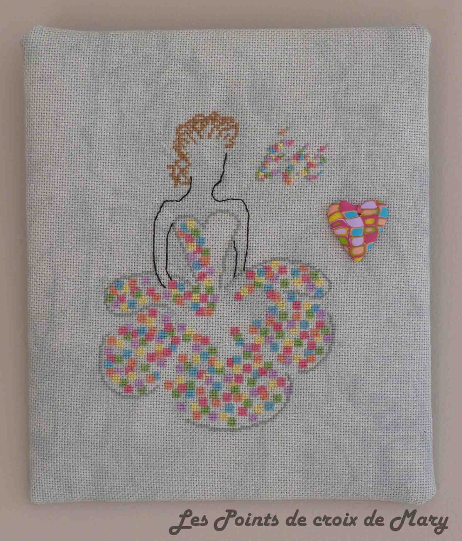 Le modèle est brodé ici en 2 fils sur 2 fils sur de la toile belfast blanche pailletée 12 fils/cm.