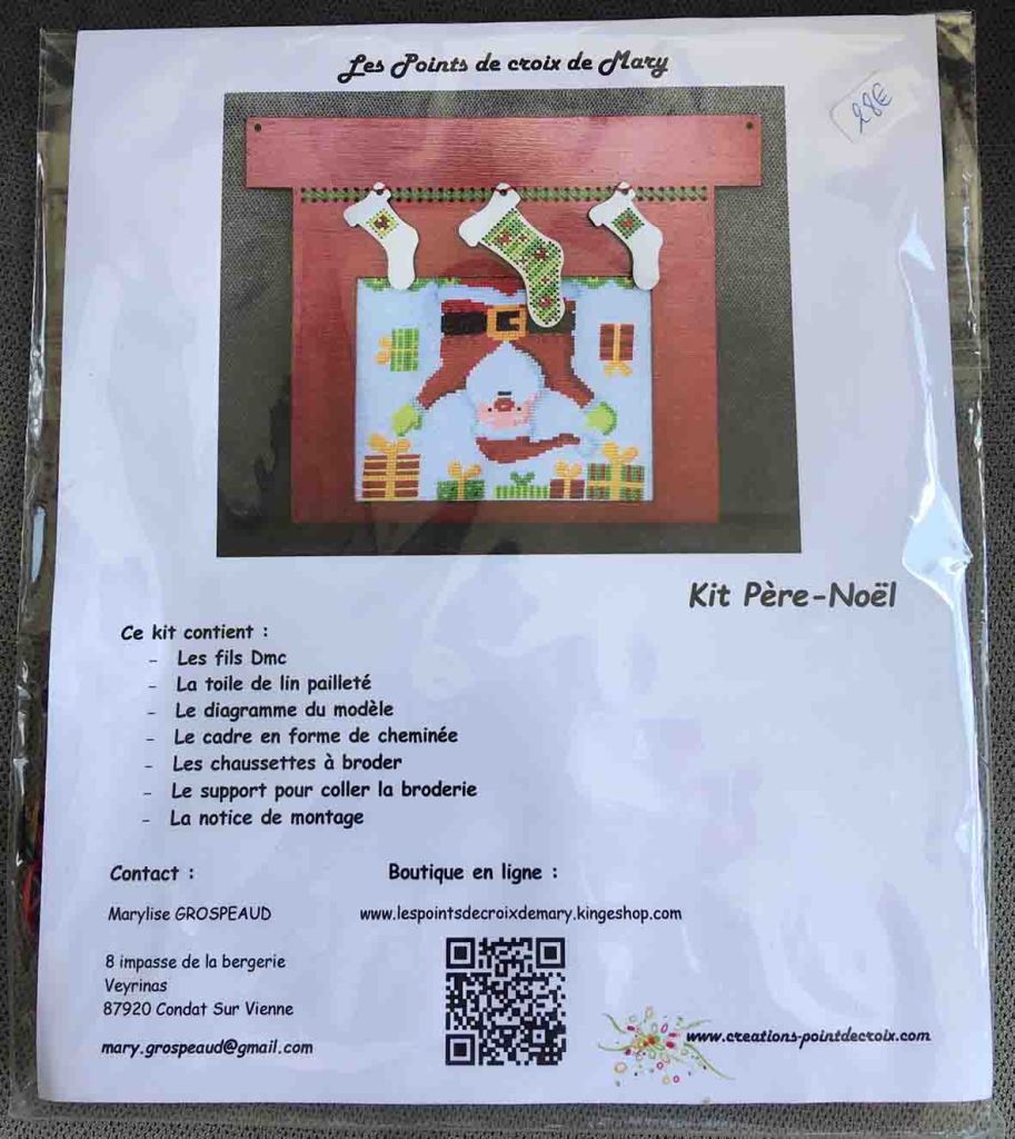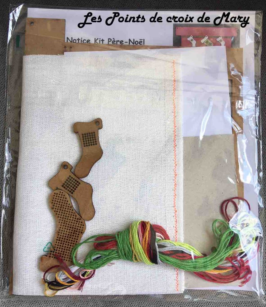 Dans chaque kit vous trouverez : les tissus découpés à la taille, la toile lugana pailleté à broder, les fils à broder, le ruban, les perles, la breloque ciseau, la laine bouclée, le diagramme de la broderie et la notice de montage.